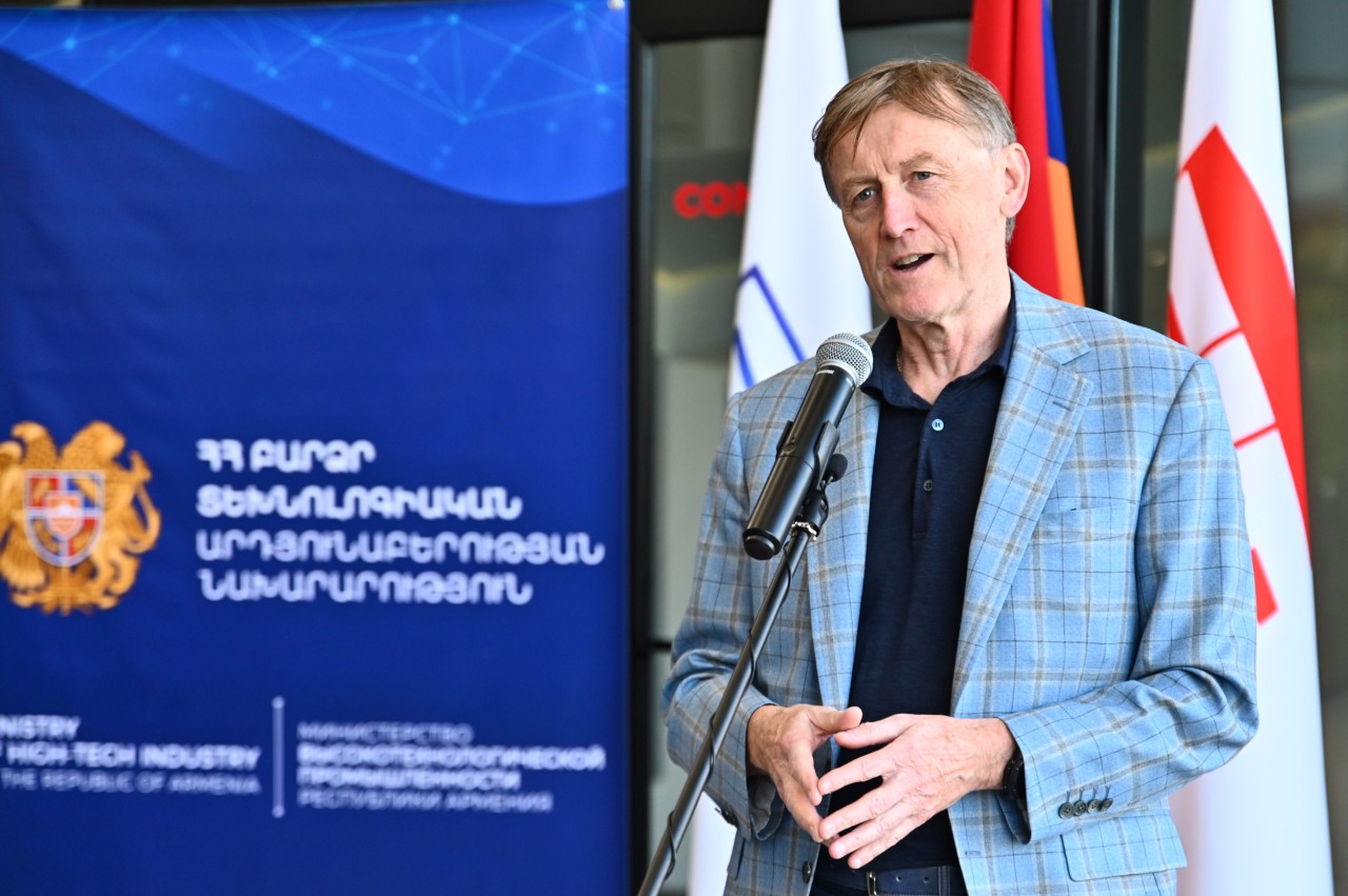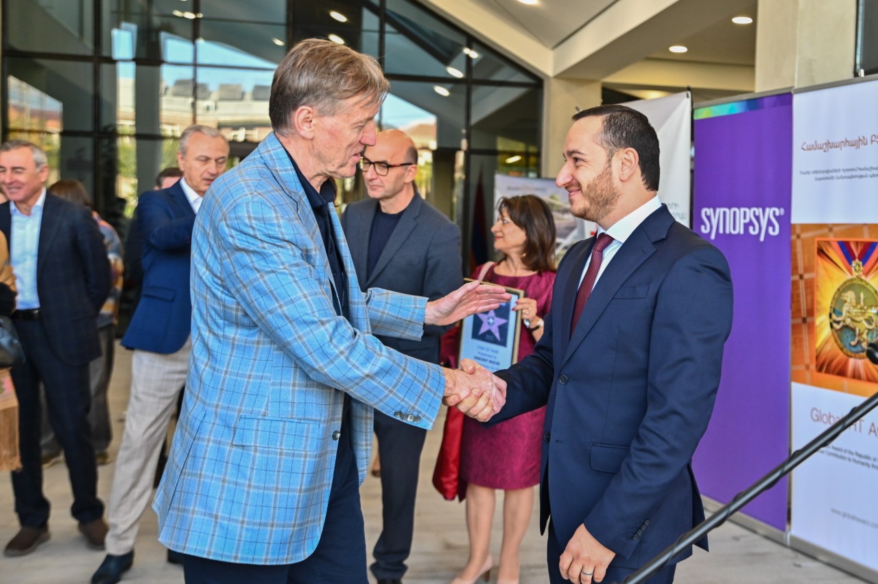 Հանդիպմանը ներկա են եղել նաև ՀՀ բարձր տեխնոլոգիական արդյունաբերության նախարար Մխիթար Հայրապետյանն ու Սփյուռքի գործերի գլխավոր հանձնակատար Զարեհ Սինանյանը: